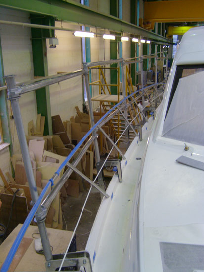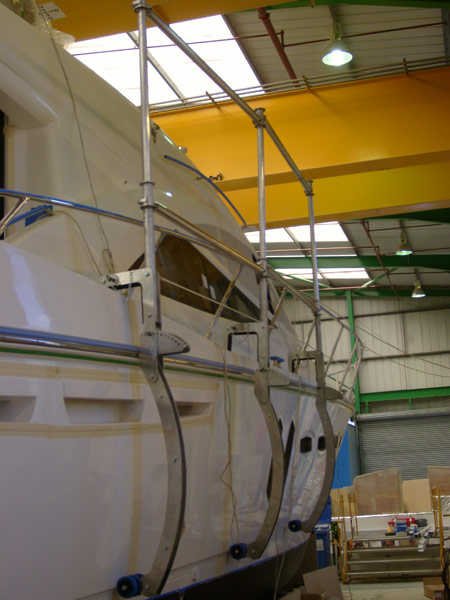 Designed and manufactured for one of the United Kingdoms leading boat manufacturers , while fitting out the boats the operatives are 4 - 5 metres above the ground, the boat fall arrestor raises the boats own pulpit rail by 300mm thus increasing the safety of the operatives.